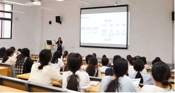 在双选会现场,深业托育(深圳)有限公司、东莞南园教育咨询服务有限公司等进行了专场宣讲,向在场毕业生详细介绍企业文化、工作环境、职业规划、薪资待遇等内容,为前来求职的学生进行答疑、指导服务。