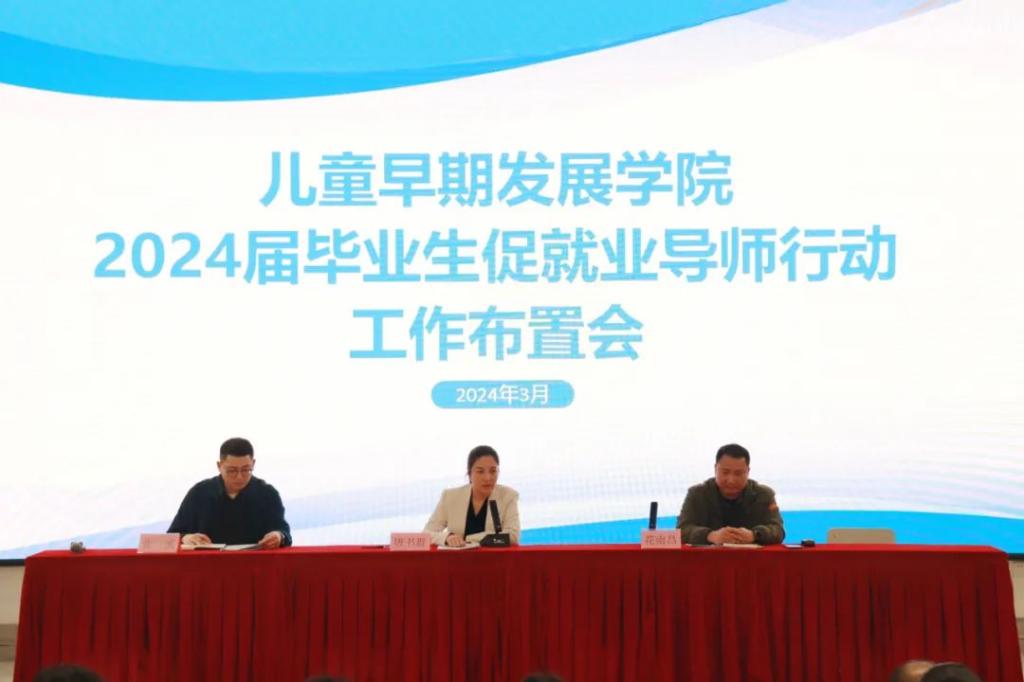 为深入贯彻落实学校关于2024届毕业生就业工作的决策部署,积极推进学院2024届毕业生就业工作,实现学院就业工作稳中提质,近日,儿童早期发展学院召开2024届毕业生促就业导师行动工作布置会,儿童早期发展学院的院领导、毕业班班主任、辅导员、就业导师参加会议。