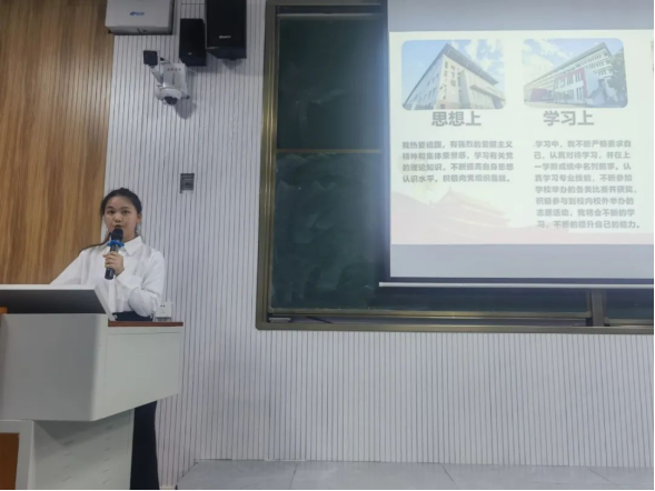 2022级行政管理专业1班的黄淑艳同学从“思想篇——厚德”“学习篇——勤学”“实践篇——感受”三个维度进行讲述。她建议同学们在大一时就要做好个人成长规划;认真学好专业课;把握时间考取英语等级等证书;抓住机会积极参加竞赛,提升专业水平;利用课余时间培养个人兴趣爱好,如摄影、剪辑等。