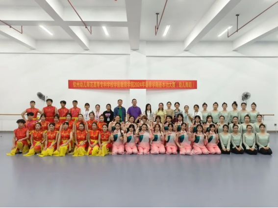 为丰富学生的艺术修养,提高学生专业技能水平,近日,学前教育学院举办“幼儿舞蹈”基本功大赛。本次比赛邀请了戴楚文、蒋丽娜、梁德战、林春萍四位老师担任评委。