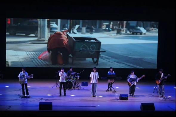 Δ学校、学院领导、老师和演员、毕业生代表合影留念