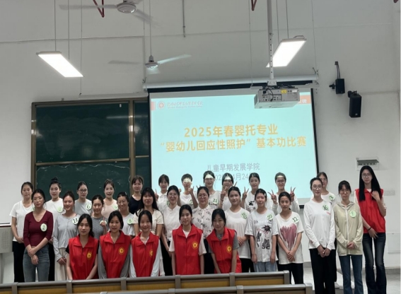 为深化婴幼儿托育服务与管理专业学生的实践能力培养,推动“岗课赛证”融通育人模式落地见效,近日,儿童早期发展学院在综合楼417教室举办2025年春季学期“婴幼儿回应性照护”技能大赛决赛。本次大赛围绕“以儿童为中心”的核心理念,通过“以赛促学、以赛促练”的实践路径,全方位锤炼学生的职业素养与技能水平。