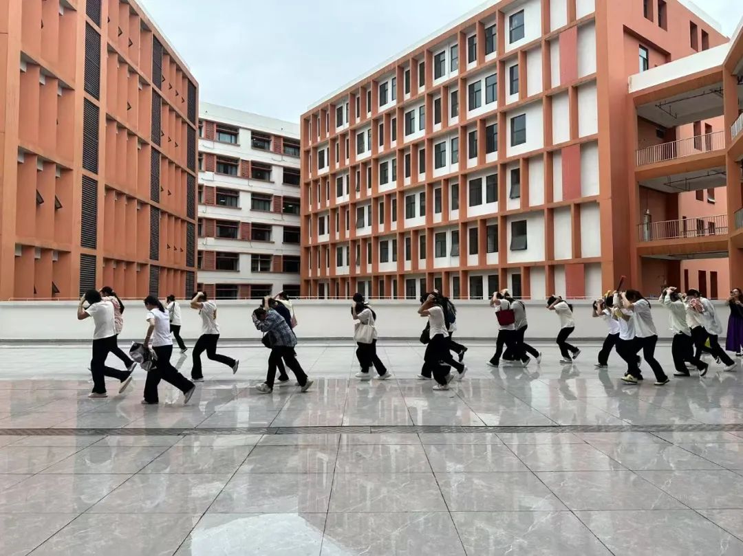 当天上午11时10分,随着一阵急促的警笛声响起,地震演练正式拉开帷幕。正在教室上课的师生们迅速响应,立即组织学生进入紧急避险状态。学生在老师的指导下,用双手或书本护住头部,迅速躲到桌子底下、墙角等三角区安全位置,尽量蜷缩身体,降低重心,静待“地震”过去。待“主震”警报声稍停,第二次疏散警笛响起,师生们按照警笛信号做好疏散避难准备。随着第二次警笛声停止,代表“主震”地震波暂时结束,各楼层疏散“哨音”顿时响起,老师立即组织同学们按照指定路线,快速、有序、谨慎地疏散撤离至学校田径场。1分40秒后,艺术楼全体参加演练人员安全到达安全区域,各班班长立即清点人数,并向现场指挥报告。经过仔细核对,艺术楼全体参加演练人员安全撤离,无一遗漏。