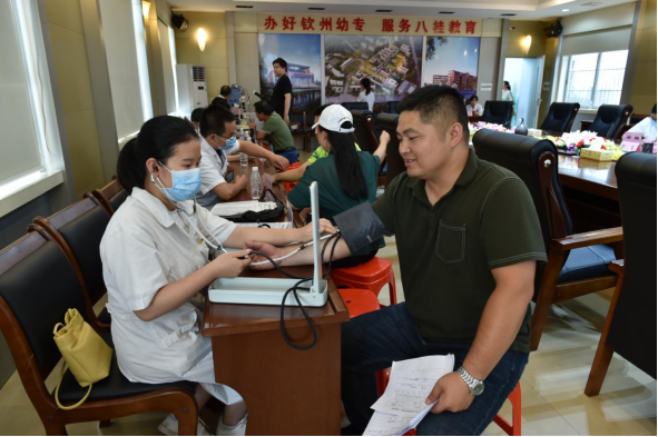 李飞副书记和吴天俊副院长分别代表钦州幼专和钦州市第二人民医院签订了党建共建合作服务协议。随后,钦州市第二人民医院选派的骨科、心内科、神经内科、眼科等多名专家为我校教职工进行了健康义诊。