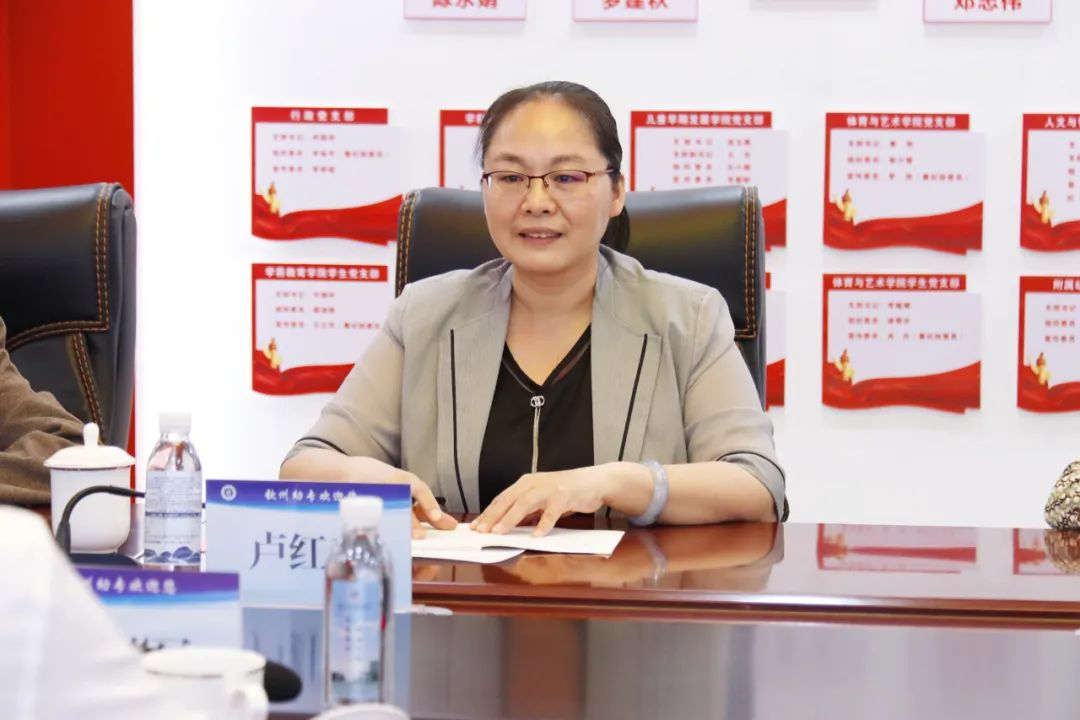 座谈会上,卢红青对黄创军一行的到来表示热烈欢迎,并围绕学校的基本概况、办学特色、专业建设、师资队伍建设及管理等方面进行了简要介绍,她表示,玉林职业技术学院作为玉林市人民政府举办的全日制高等职业学校,有着服务地方工业发展办出特色专业的优势和机遇,希望两校秉持互利共赢原则,打造长效合作模式,特别是在学科建设、人才培养、社会服务等重要领域实现优势互补,共同为广西职业教育事业的发展注入新的活力。黄创军对钦州幼儿师范高等专科学校的热情接待表示感谢,介绍了玉林职业技术学院的发展近况和面临的挑战等情况,他表示,钦州幼儿师范高等专科学校近年来发展迅速,办学质量获得社会的广泛认可,希望两校传承友谊,在学科建设、科学研究与人才培养等方面深化交流合作,共促两校发展。