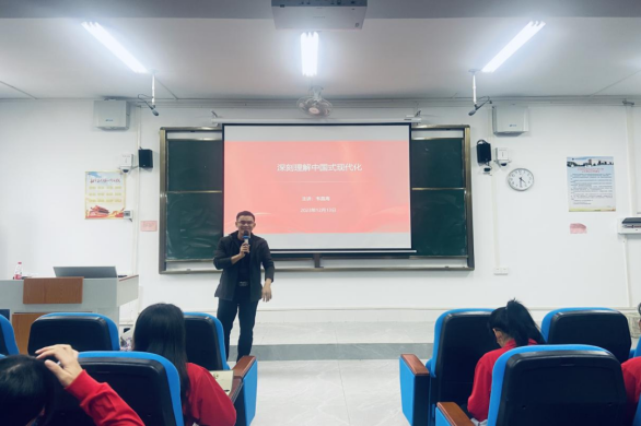 韦昌海老师以“深刻理解中国式现代化”为题,阐释现代化的共同特征和一般规律,指出中国式现代化的成功实践和理论创造,有力地打破了“现代化=西方化”的迷思,擘画了中华民族伟大复兴的光明前景。