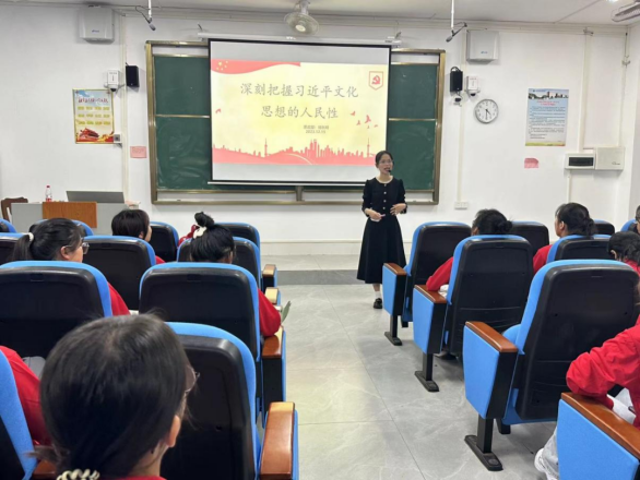 杨秋明老师的讲座,以“深刻把握习近平文化思想的人民性”为题,阐述了坚持人民至上是中国共产党的根本政治立场、坚持以人民为中心的工作导向、坚持人民是鉴赏家和评判者等内容。