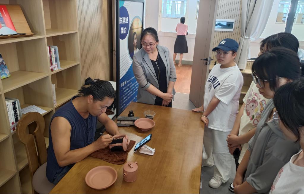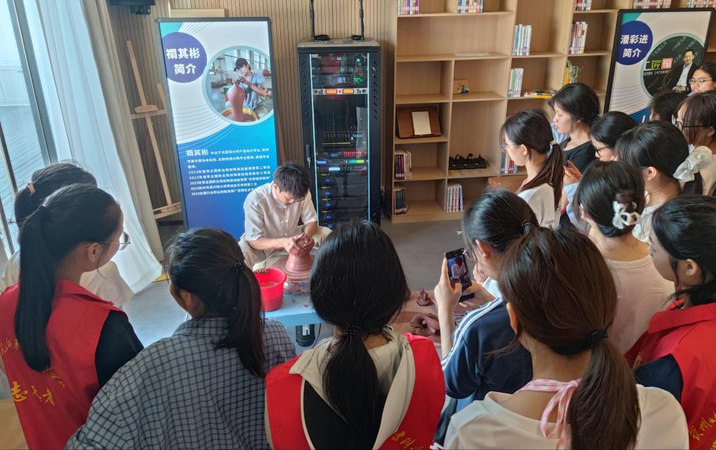 尤为引人入胜的非遗技艺体验环节,将活动推向高潮——独特的扇舞韵律、尺钱技艺的精巧绝伦、传统灯笼扎纸(走马灯)的匠心独运、以及国家非遗坭兴陶拉胚雕刻的鬼斧神工,深深吸引了广大师生热情参与、动手体验。师生们亲手触摸、共同研习这些承载着民族智慧与地域特色的非物质文化遗产,在师生互动、协作探索的愉悦氛围中,极大增强了对中华优秀传统文化的深切认同与由衷自豪,文化自信在“师悦”同行、指尖共舞的实践中深深扎根、蓬勃生长。
