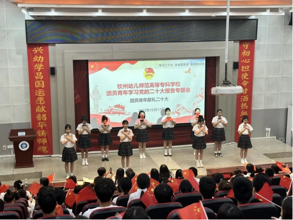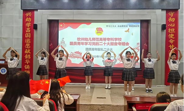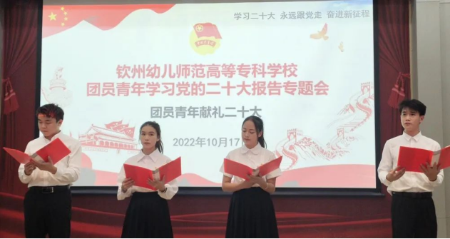 为深入学习贯彻党的二十大精神,10月17日,钦州幼专召开团员青年学习党的二十大报告专题会,校团委干部代表、学生会干部代表、青年教师代表和团员青年代表等两百多人参加。
