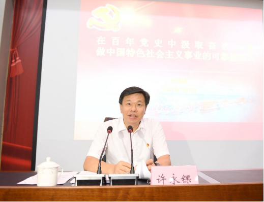 ??7月7日下午,钦州市委书记许永锞到我校讲授题为《在百年党史中汲取奋进力量??做中国特色社会主义事业可靠接班人》的专题党课,与师生们一同重温百年党史。本次党课由市委常委、宣传部部长郑娟主持。自治区党委党史学习教育第七巡回指导组组长李芳源,钦州市副市长苏英权,钦州市委秘书长方建安等...